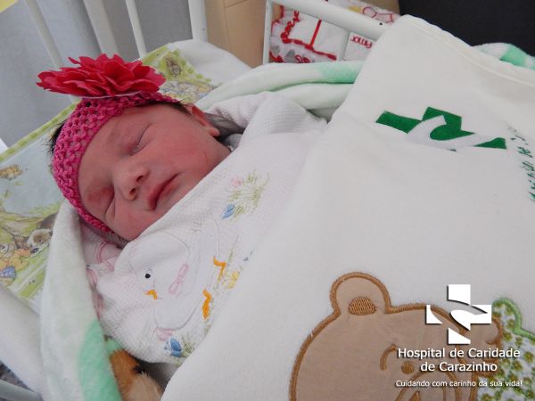 Olá. Eu nasci com 4.890 kg e 50 cm. Fábio Zanetti é o meu papai e Elisabete Severo da Silva é a minha mamãe. Quem cuida de mim é o(a) Dr.(a) Lúcia (Pediatra). A equipe do Hospital de Clínicas de Carazinho parabeniza a família pela chegada da Allana.