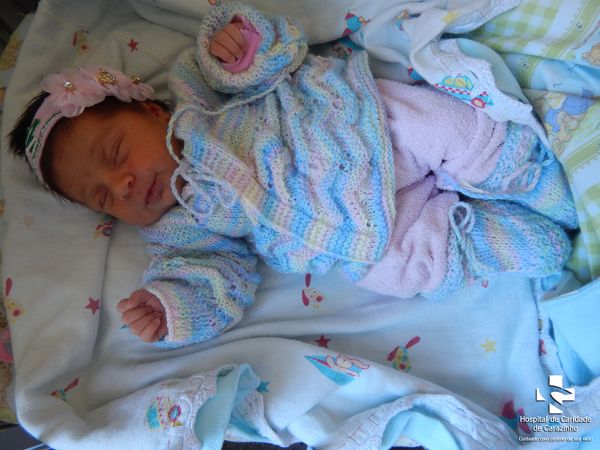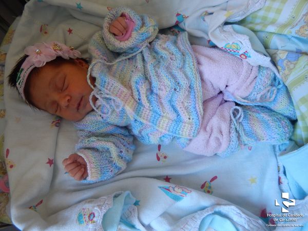 Olá. Eu nasci com 3.320 kg e 47 cm. Evandro Becker é o meu papai e Natieli Soares é a minha mamãe. Quem cuida de mim é o(a) Dr.(a) Maira (Pediatra). A equipe do Hospital de Clínicas de Carazinho parabeniza a família pela chegada da Rhyana.