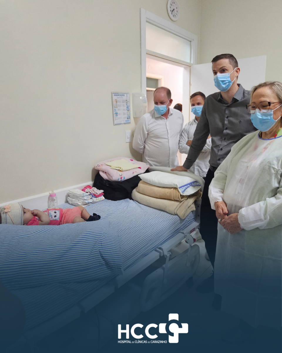 Na quarta-feira (14), durante a inauguração dos novos serviços de diagnóstico por imagem, a secretária estadual da Saúde do Rio Grande do Sul, Arita Bergmann, visitou a pequena Luna no HCC. Acompanhada pelo Dr. Rafael Espanhol e pelo presidente do HCC, Jocélio Cunha, a secretária pôde ver de perto o impacto da alta complexidade em funcionamento na instituição. Visivelmente emocionada, destacou que histórias como a de Luna representam muitas outras que hoje são motivo de alegria para as equipes do hospital. “É muito bom ver o HCC recuperando vidas, com recursos e investimentos do Governo do Estado do Rio Grande do Sul”, afirmou.