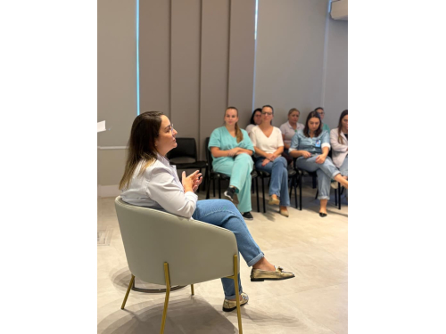 O evento de encerramento foi marcado por um momento de reflexão e valorização, com a palestra “Menopausa e a Saúde da Mulher”, ministrada pela Dra. Gabriela Piva Paim, além de uma sensível mensagem conduzida pela equipe de Psicologia do HCC.