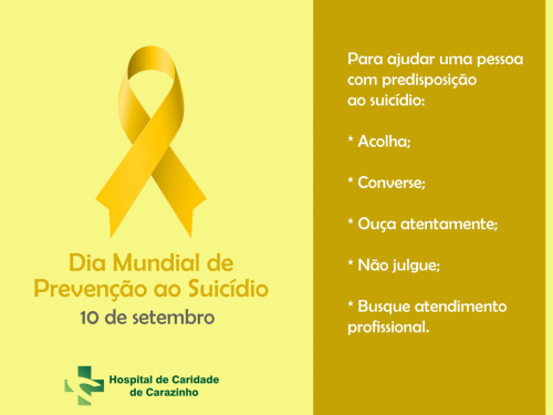 Engajado na campanha, o Hospital de Caridade de Carazinho apresenta, nesta publicação, algumas dicas de como identificar e ajudar uma pessoa com predisposição ao suicídio, elaboradas pelo psicológico clínico da instituição, Marcelo Graciano.