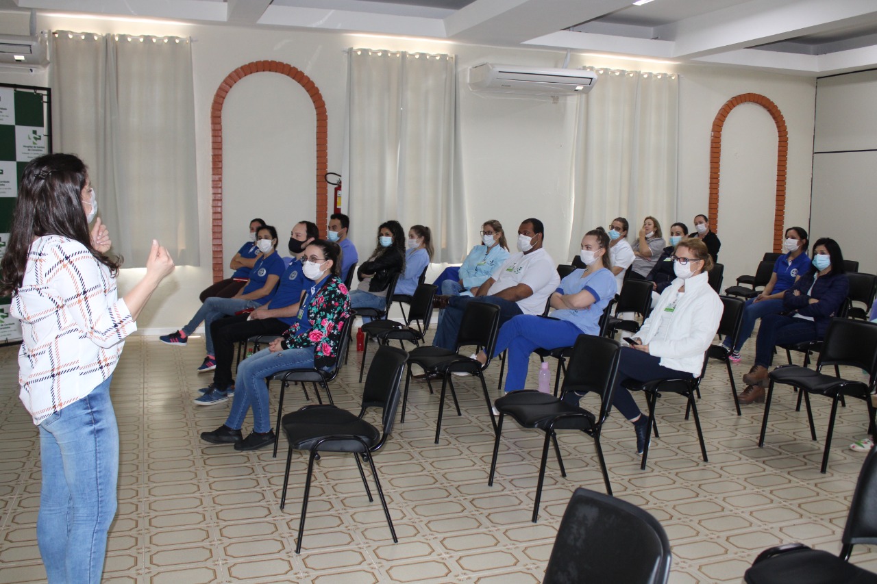 No segundo dia de programação da 28ª Semana Interna de Prevenção de Acidentes de Trabalho 2021, realizado pela Comissão Interna de Prevenção de Acidentes (CIPA), do Hospital de Caridade de Carazinho, o tema foi “Cuidado com a postura no ambiente de trabalho”, com a fisioterapeuta do HCC, Aline Ertel Ribeiro.