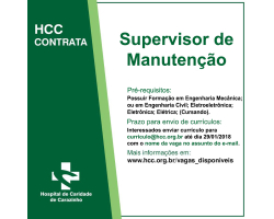 Interessados enviar currículo para curriculo@hcc.org.br até dia 29/01/2018 com o nome da vaga no assunto do e-mail.